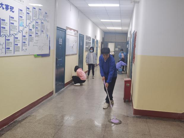 同学们有序分工,按楼层进行打扫。我们扫地擦地,擦洗老师们的办公室门,清洗楼梯扶手和墙角踢脚线等等。战“疫”还未结束,防疫必不可少。爱国卫生运动便是防疫重要一环。爱国卫生运动引导我们日常养成卫生习惯,增强环保理念,共同抗击疫情,体悟劳动价值,弘扬爱国精神!