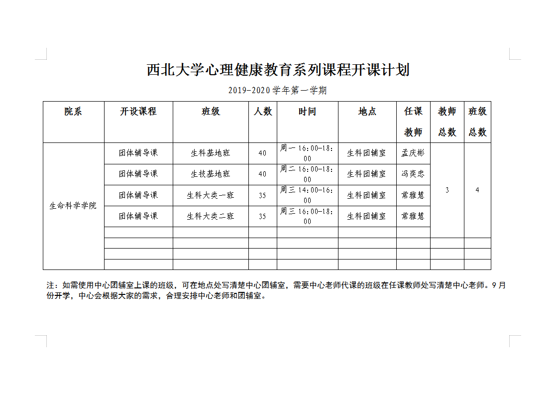 (心理课程开课计划)