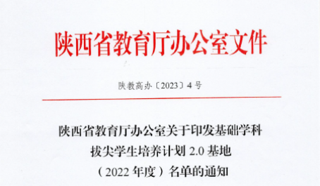近日,陕西省教育厅2022年度基础学科拔尖员工培养计划2.0基地评选结果公布,学部“生物科学拔尖员工培养基地”首批入围。此次评选共计9所高校11个学科入选。