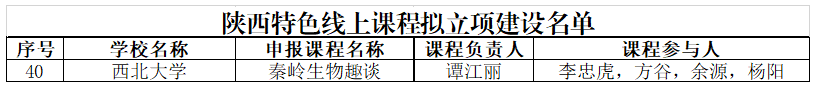 4月11日,陕西省教育厅公示了陕西特色线上课程立项建设名单,学部谭江丽教授的《秦岭生物趣谈》课程入选。获准立项的课程建设周期为2年,建设完成后通过验收的课程将自动认定为省级一流课程。