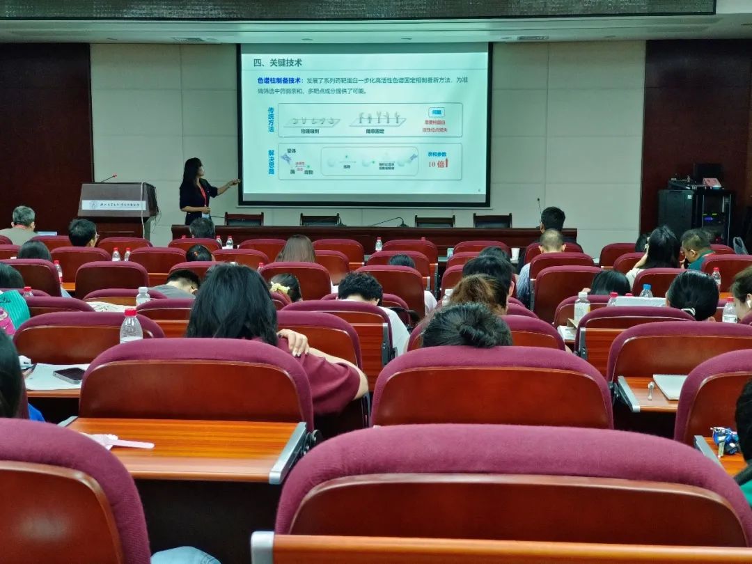 李倩副教授课题组将创新中药亲和分析技术作为长期坚守的研究方向,以药为本、以靶为标,定向筛选,针对中药功效成分筛选周期长和准确度低的瓶颈问题,提出固定化受体蛋白色谱药物功效成分筛选新观点。实现了固定化受体色谱创建及示范应用的关键技术创新,例如解决不同种类药靶蛋白制备难的药靶蛋白制备技术、突破色谱筛选在区分目标成分药效特征方面局限的色谱柱制备技术及别构配体筛选技术。课题组通过His-NTA-Ni2+的螯合作用和受体-阿普洛尔亲和作用的双重作用力实现受体固定,建立了受体新型双位点固定化方法,以及在别构配体流动相添加剂的存在下基于激动剂与受体的相互作用规律,建立了别构响应型β-AR色谱研究新方法,并且筛选DNA编码酚酸类中药分子库中β-AR的活性成分APF,建立了别构响应型的受体色谱筛选模型,填补了中药别构配体筛选空白,丰富了中药分子的功效内涵。李老师的科研工作建立了数十种受体色谱模型,形成了配体识别、高效分离和活性早期评价三位一体功效成分筛选平台体系;突破了学界亲和色谱不能体现目标成分功能活性的传统观点;且破解了色谱筛选中药功效成分筛选周期长和准确度低的技术难题。