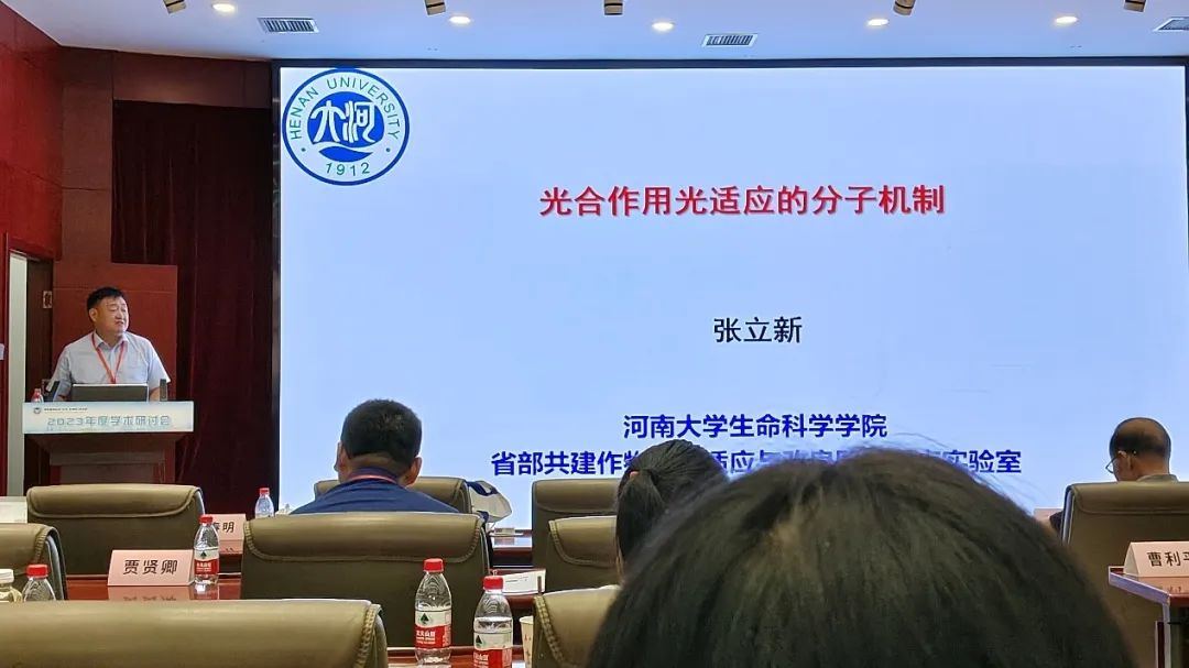 随后,张立新教授作题为《光合作用光适应的分子机制》的学术报告。他以拟南芥中的状态转换激酶STN7作为切入点,阐释了植物在光合作用氧化还原过程中的机制。研究表明,蛋白质通过改变自身构象,从而达到调控光合作用过程中不同状态之间的转换。在研究波动光对光合作用的影响时,应该按照不同的波动频率,将光源分为云斑和太阳斑,实验发现,这两种频率不同的波动光会改变拟南芥的类囊体质子动力。在高频的波动光下,拟南芥的光系统复合物会受到影响,转录会产生变化,并且其与昼夜节律相关的基因也会呈现出显著的差异。通过对多个昼夜节律相关的遗传材料进行研究,可以发现拟南芥对波动光较为敏感。在接下来的研究中,张立新教授团队将致力于筛选水稻高光能适应材料,通过一系列对基因的过表达或敲低操作,监测水稻生长过程中脂类代谢、固醇代谢和蛋白表达量,最终达到改变水稻性状,改善水稻质量的目的。