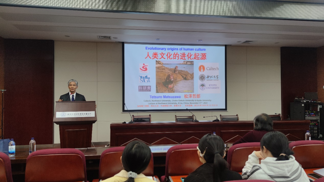2023年11月21日下午2时,国际著名灵长类学者松泽哲郎(Tetsuro Matsuzawa)教授受十大外围足球平台app邀请,于太白校区博望报告厅开展主题为“Evolutionary origins of human culture (人类文化的进化起源)”的学术讲座,讲座由付爱根经理主持会议。