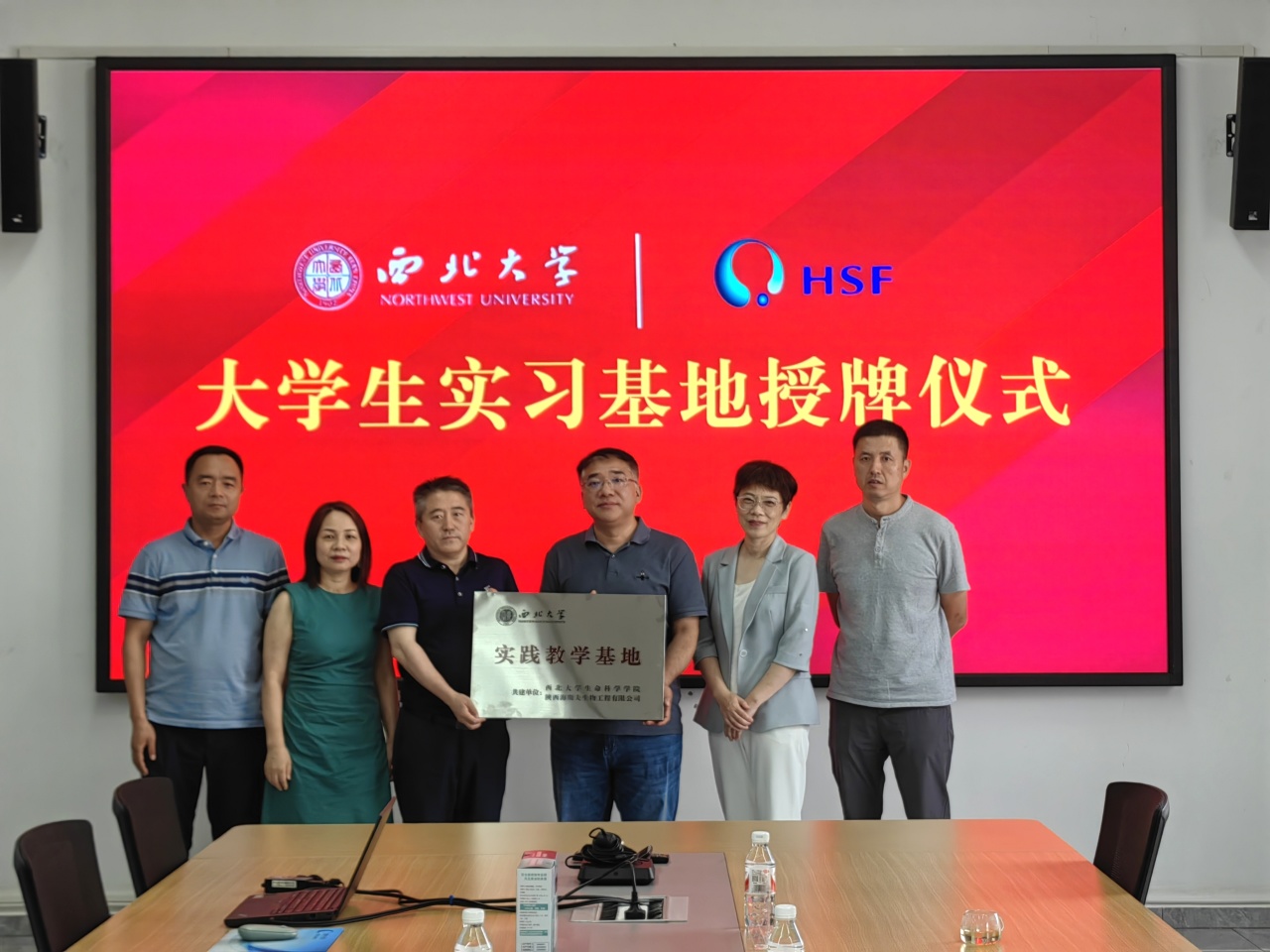 张亚妮介绍了公司专业分布、本科培养方案、教学实践模式等,期待双方拓展出更多合作模式,促进员工培养与社会需求积极接轨;魏宁介绍了公司2024届毕业生基本情况、就业进展与当前工作重点,表示将尽全力为用人单位搭建与毕业生高效双选平台,希望能拓展更多针对性岗位,助力毕业生更顺利就业;朱宏莉、雷重涤重点分享了本科生实践实习现状与合作需求;与会成员围绕教学实践、生产实习、人才输送、课程开发、互派交流等进行了充分交流。最后,双方共同举行老员工实习基地授牌仪式,魏宁代表公司为“十大外围足球平台app 陕西海斯夫生物工程有限公司 实践教学基地”授牌,双方互赠纪念品并合影留念。