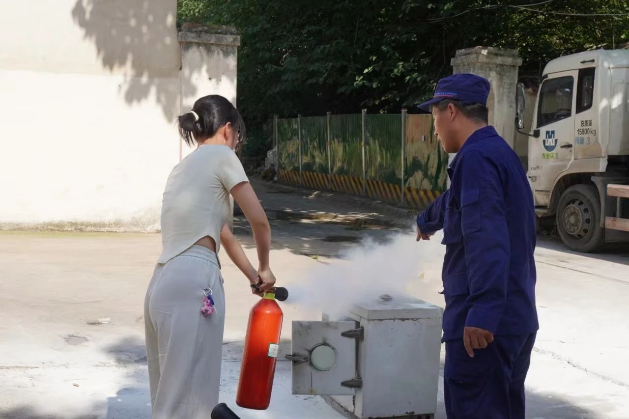 讲座结束后,在钟教官的带领下,师生在九号教学楼侧空地进行消防演练。钟教官首先细致地讲解了实验室常见灭火器的使用技巧和注意事项,特别强调面对火灾时要保持冷静,他提醒大家,要根据火灾的具体情况,结合不同灭火器的特性,合理选择并使用灭火器进行灭火。在钟教官的亲身示范和悉心指导下,师生们有条不紊地进行消防演练,通过理论与实践的结合,更加熟练地掌握了实验室火灾应急处理的基本方法。