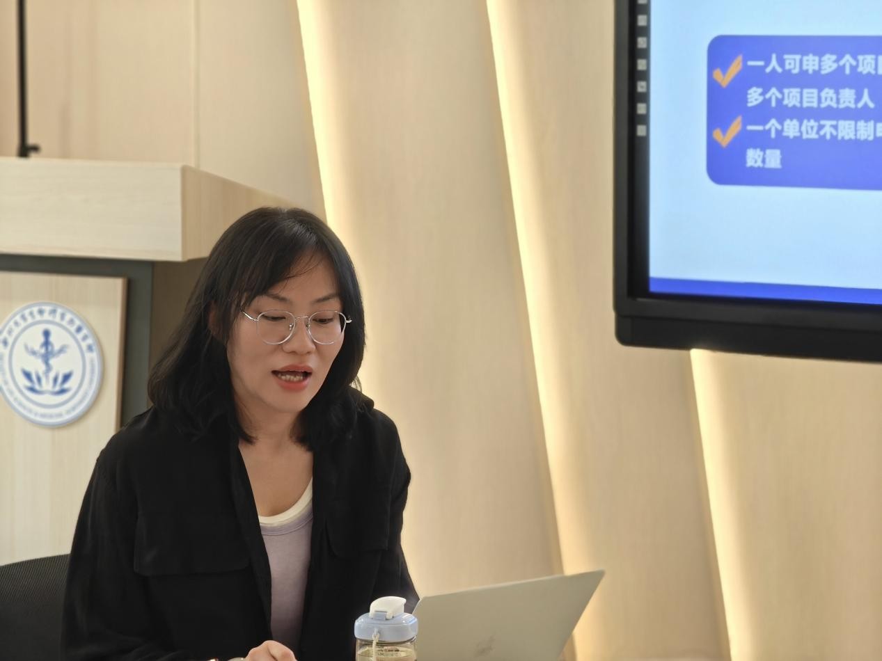 会上,马苓兮对国家外国专家项目进行了系统解读,内容涵盖政策背景、申报流程以及最新变化。她结合公司近年来成功申报的典型案例,详细剖析了项目申报的关键环节与注意事项。随后,康蓉就项目申报书的撰写技巧与常见问题开展了专题讲解。并通过实际案例分析,帮助教师规避申报过程中的常见错误。她强调,申报材料不仅要逻辑严谨、格式规范,充分展现项目的创新性与应用价值,还需强化与外国专家的前期沟通,以保障合作计划切实可行。