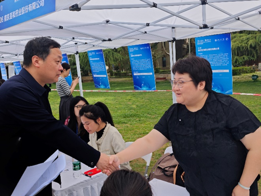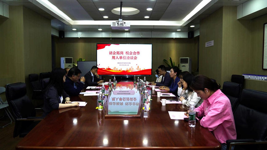 吕建荣、陈富林及相关负责人走访了重点用人单位,并同用人单位和求职员工进行现场互动交流,了解单位招聘需求和毕业生就业情况,听取了用人单位对公司人才培养、就业服务工作的建议,并向用人单位热情推荐优秀毕业生。刘小光书记、魏宁副书记、陈凯副经理与深圳华大基因股份有限公司、西安巨子生物基因技术股份有限公司、金花企业(集团)股份有限公司西安金花制药厂、西安金域医学检验所有限公司、西安迪赛生物药业有限责任公司、晖致医药有限公司、陕西秦岭七药协同创新中心有限公司、陕西永磊生物科技有限公司等10余家单位进行了现场洽谈,充分了解用人单位基本情况、招聘需求与合作意向,结合专业设置、生源分布、培养质量等情况推荐公司毕业生,围绕毕业生就业、创新创业、实习见习、产学研合作等事宜进行了充分讨论。