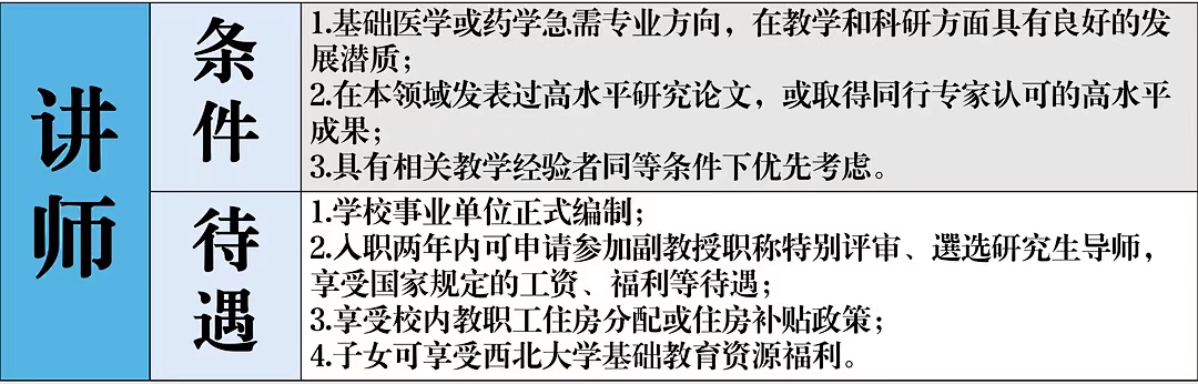 西北老员工命科学与医学部团队招聘公告