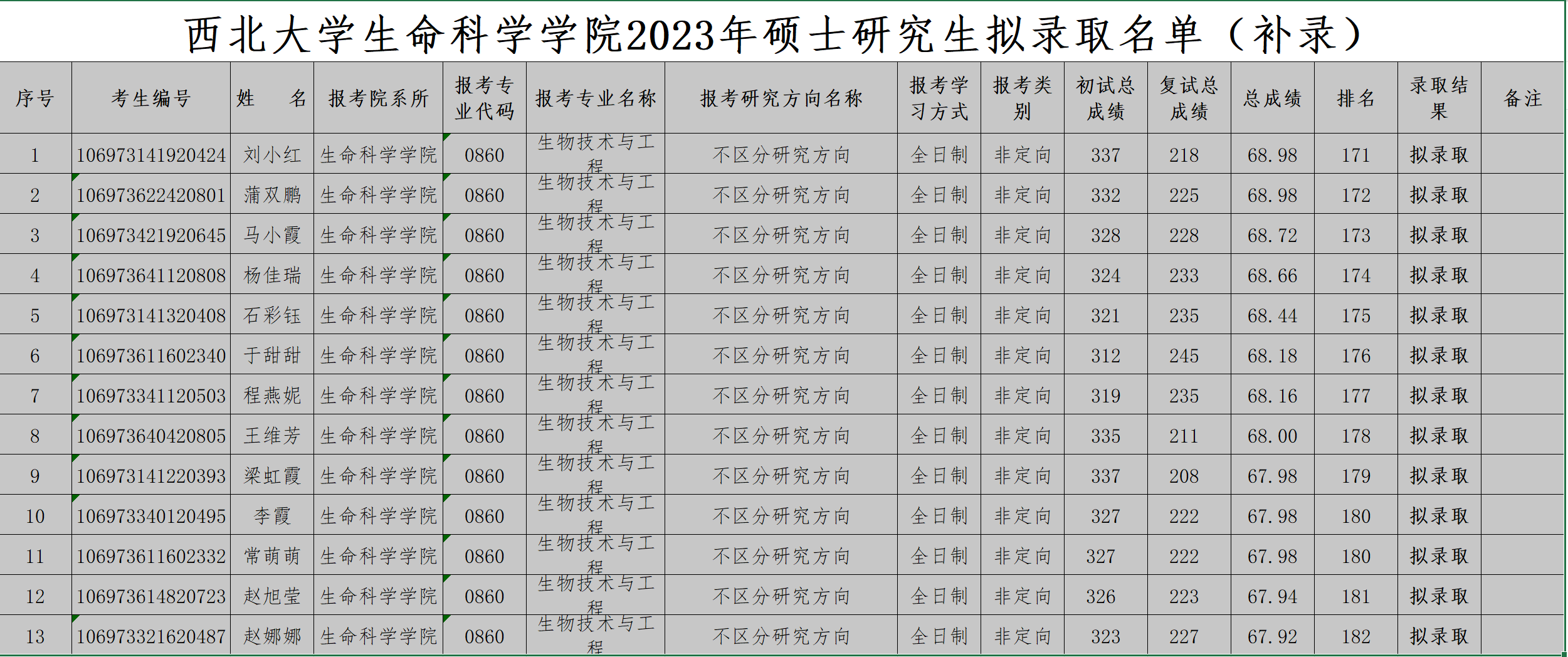十大外围足球平台app2023年硕士研究生拟录取名单(补录)