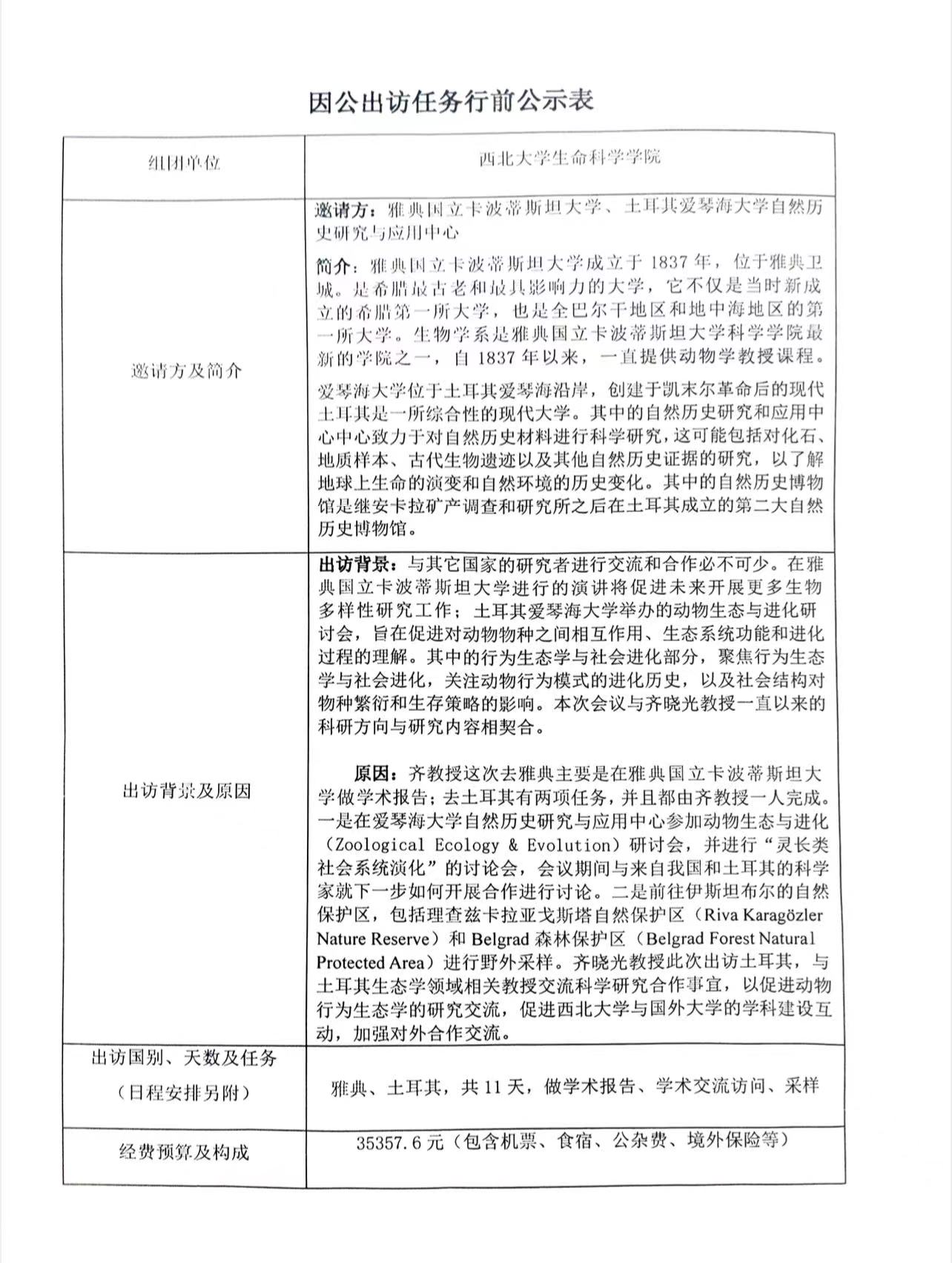 因公出访任务行前公示表
