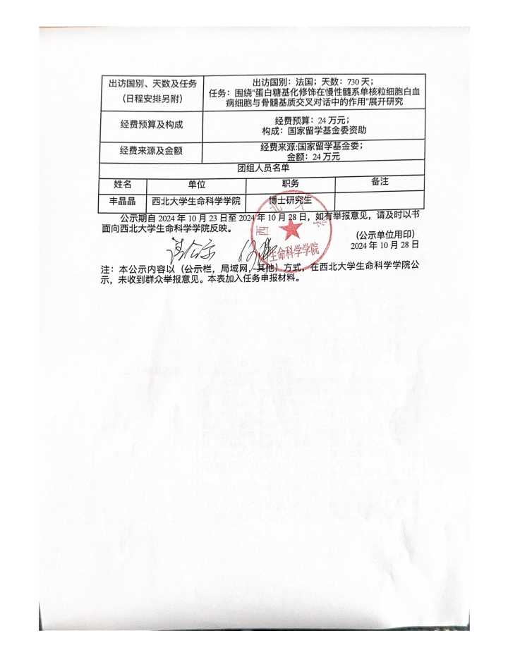 因公出访任务行前公示表