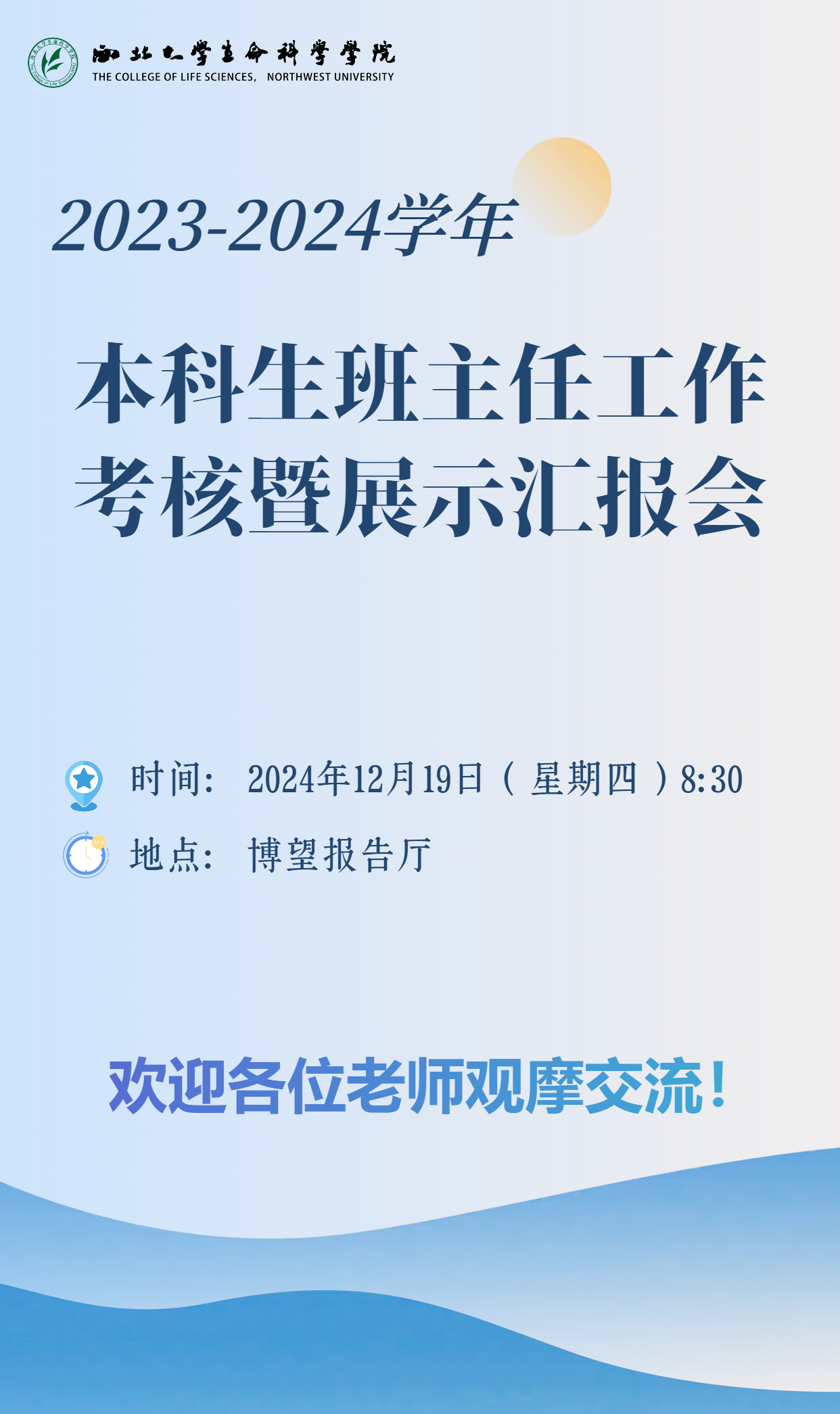 根据公司《关于2023-2024学年本科生班主任 考核工作的通知》有关要求,现决定召开2023-2024学年本科生班主任工作考核暨展示汇报会,具体安排如下。