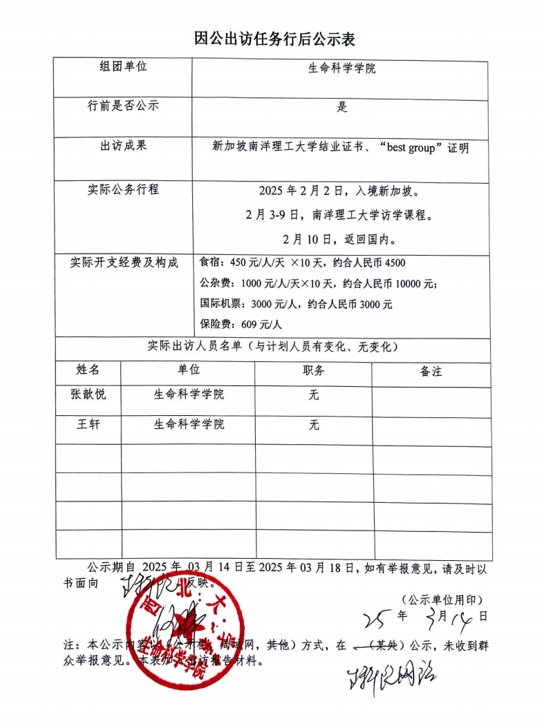 因公出访任务行后公示表