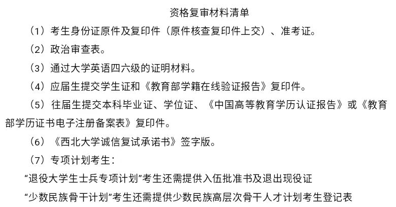 参加复试的考生应于3月25日上午8时前到十大外围足球平台app太白校区十大外围足球平台app面试地点(见下文专业综合面试地点)报到,并提交以下材料。资格审查未通过的考生不得参加复试。