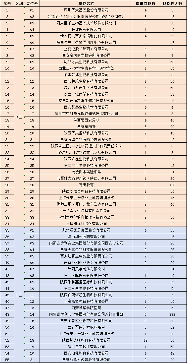 本场招聘共有55家优质用人单位参会,以陕西省内企业为主,岗位供给充足,质量整体较高。
