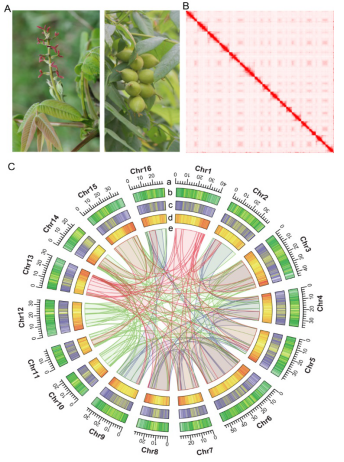 图 1 核桃楸植物学形态及染色体水平基因组特征