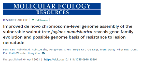 近日,为了揭示重要经济生态价值的胡桃属植物核桃楸基因家族演化和其抗线虫病潜在的分子基础,十大外围足球平台app赵鹏教授团队以核桃楸为主要研究对象,对秦岭朱雀森林公园采集个体进行了全基因测序组装注释分析,选取被子植物9个物种进行比较基因组学分析,并开展了核桃楸与核桃两个染色体水平基因组的详细比较分析,如PAV,特有基因注释,基因家族收缩扩张等分析和试验,研究发现PR(Bet_v_1)基因家族为重要的胡桃属植物抗根结线虫的候选基因。该研究成果以题目为“Improved de novo chromosome-level genome assembly of the vulnerable walnut tree Juglans mandshurica reveals gene family evolution and possible genome basis of resistance to lesion nematode”论文在线发表在国际学术TOP期刊《Molecular Ecology Resources》上(五年IF=7.493)。