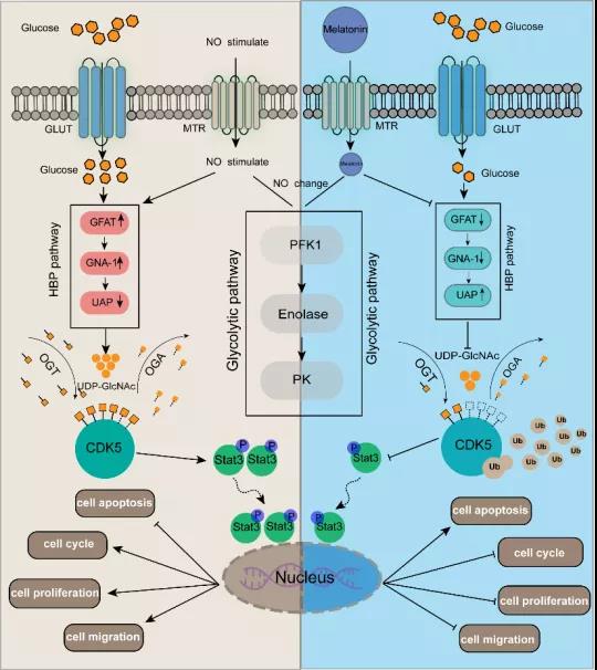 图3:褪黑素通过降低CDK5上O-GlcNAc修饰从而抑制肿瘤生长示意图.