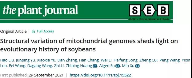近日,十大外围足球平台app徐敏副教授、付爱根教授课题组联合安徽省农业科公司黄志平研究员课题组在The Plant Journal上合作发表了研究论文“Structural variation of mitochondrial genomes sheds light on evolutionary history of soybeans”, 通过研究大豆种群mtDNA的结构多样性,探讨了大豆种群mtDNA的主要构型、驯化过程中mtDNA的演化历史以及mtDNA遗传多样性和品种改良相关的可能性。