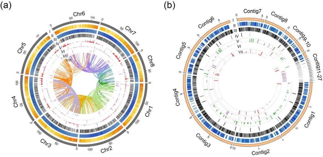 图 1 黄花棘豆与A. oxytropis基因组组装的全局图展示