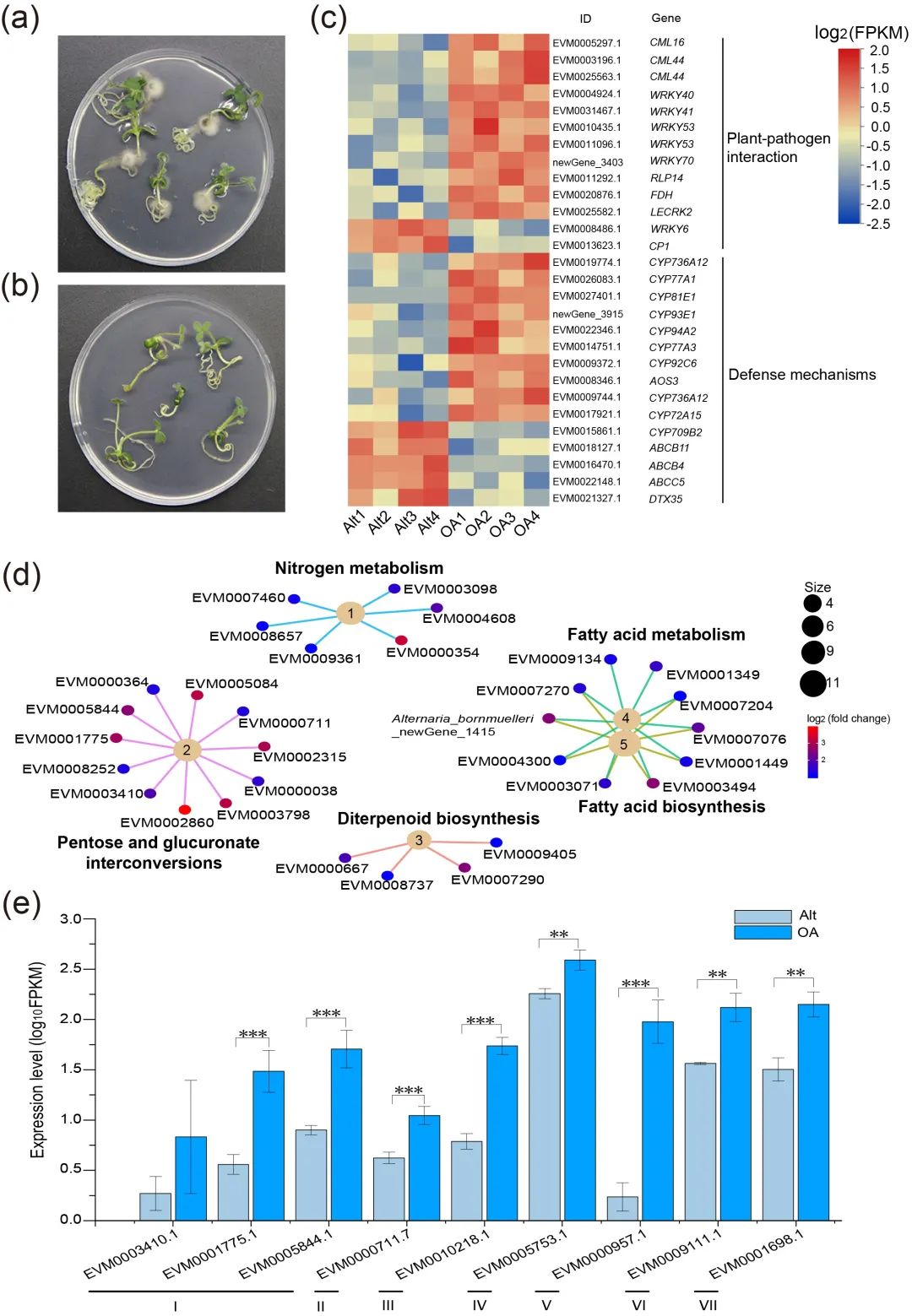 图 4 黄花棘豆与A. oxytropis共生/非共生状态下基因表达水平与代谢途径的变化