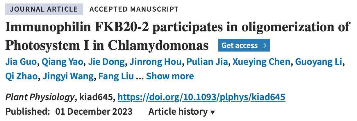 近日,十大外围足球平台app付爱根团队在Plant Physiology在线发表了题为“Immunophilin FKB20-2 participates in oligomerization of Photosystem I in Chlamydomonas”的研究论文(https://doi.org/10.1093/plphys/kiad645),报道了一个定位于类囊体腔内的亲免蛋白FKB20-2参与衣藻光系统I积累的分子机制。