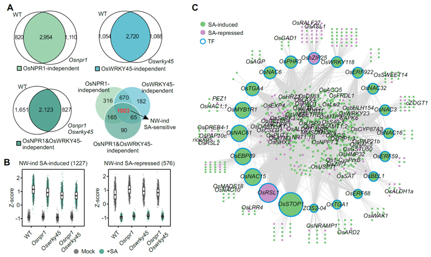 图2. 不依赖于OsNPR1/OsWRKY45的水杨酸信号调控网络构建