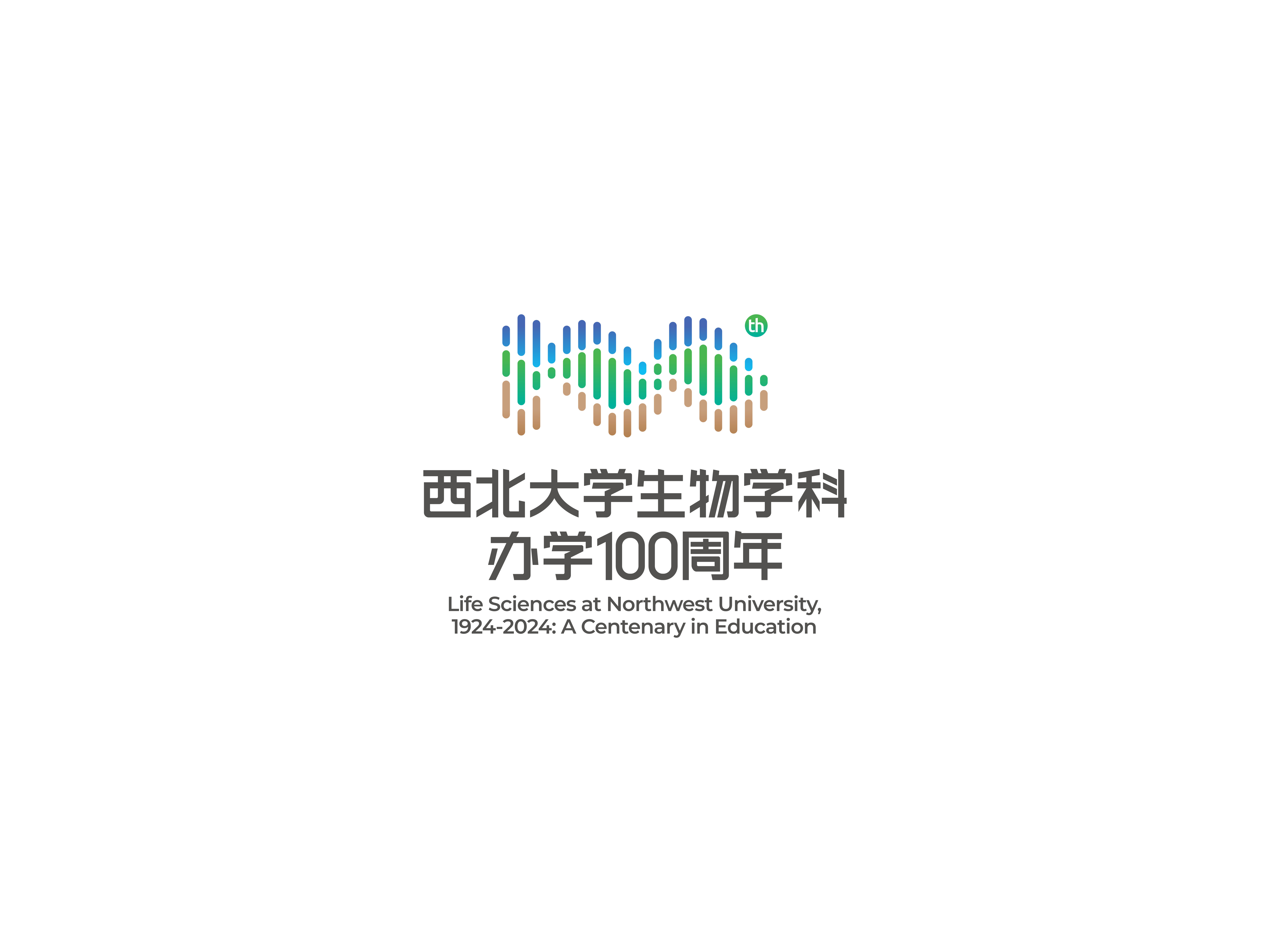 象征生物学科的抽象DNA双螺旋结构精妙的组成了数字100的具象视觉,直观表述了西北老员工物学科走过100年的办学历程。标志整体外形由三层序列图形组成,第一层金黄色,代表着深厚的教育积淀与底蕴,为优秀的人才提供丰沃的教育土壤;第二层绿色,是带着对生命科学的敬意,在探索与精研中不断成长;第三层蓝色,是蓝色的天空,是同频科学技术属性的表达,也是美好环境哺育下的时代向往。
