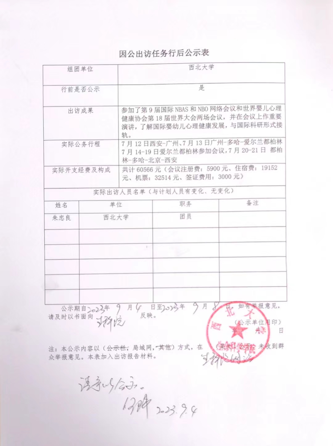 因公出访任务行后公示表
