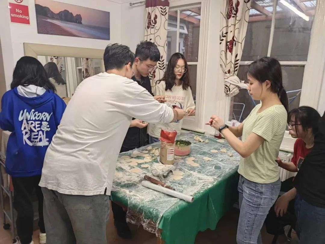 其间我们还进行了包饺子集体活动,从和面、调馅到擀皮、包饺子、煮饺子,均由同学们自己动手完成!大家分工明确,各司其职,有猪肉韭菜、牛肉韭菜、韭菜鸡蛋的饺子,流水线作业,一盘盘热气腾腾的饺子出锅啦!在异国他乡不仅吃到了自己动手做的香喷喷的饺子,更有团队合作精神的体现!